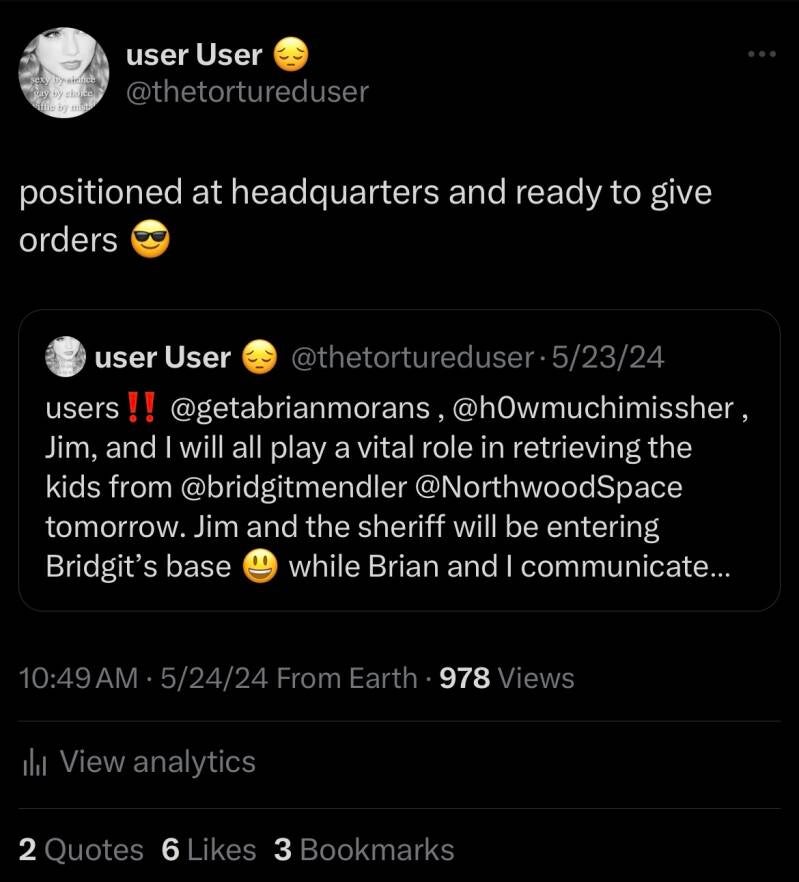There had been many smaller scale missions within the TTPD before operation #SaveTheKids, and those smaller scale missions may eventually be covered in these here blog posts. However, operation #SaveTheKids was really the starting point for TTPD users to embark on grander and larger missions as The Time Travel Police Department. #SaveTheKids was a mission the sheriff (@h0wmuchimissher on X) and Jim embarked on together, while leader user (@thetortureduser) and the deputy sheriff (@getabrianmorans) gave orders from headquarters. Below is the story of how saving Brian's kids (goats) went <3
